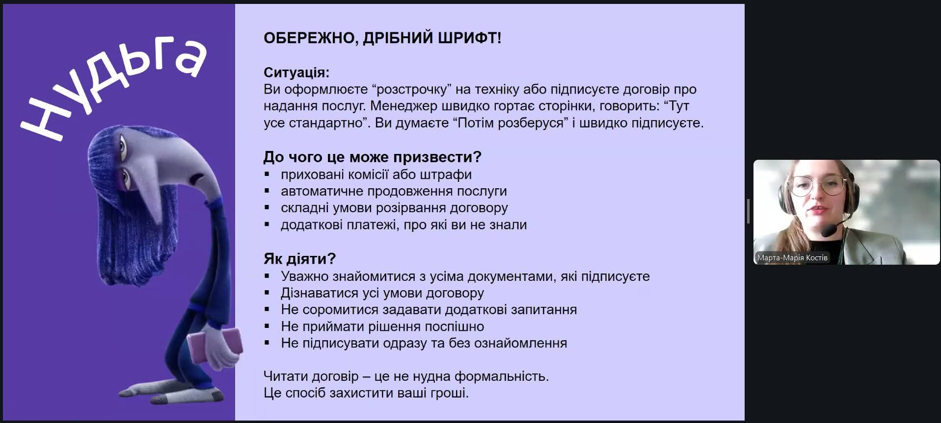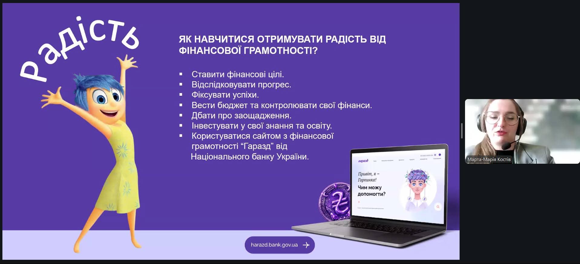 Разом із експерткою НБУ студенти шукали відповіді на важливі питання: чому навіть ґрунтовні знання з фінансової грамотності не завжди захищають від імпульсивних витрат. Під час вебінару учасники дізналися: