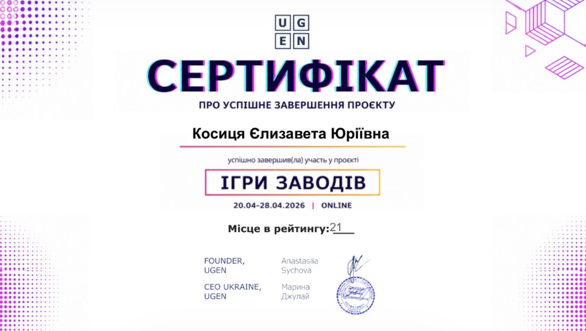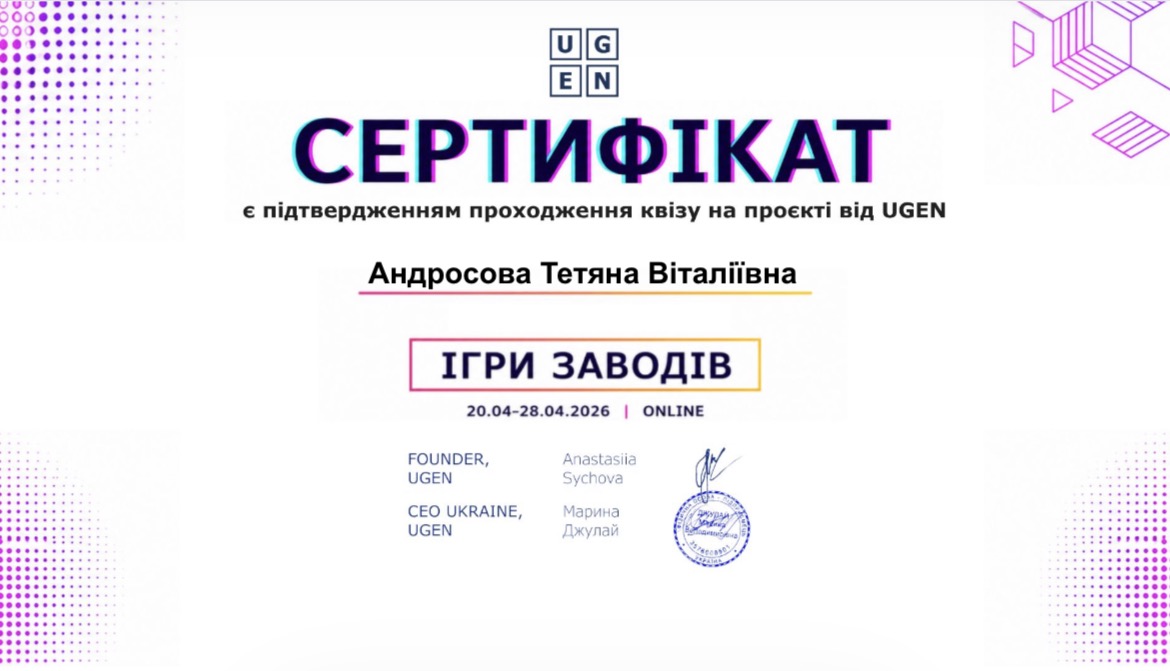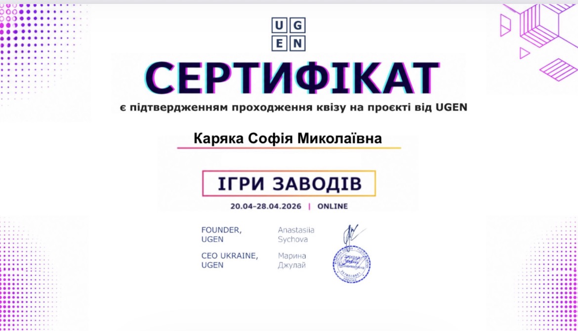 Здобувачі освіти нашого закладу успішно взяли участь у Всеукраїнському освітньому проєкті «Ігри заводів», організованому компанією UGEN, який відкриває можливості зануритися у світ сучасного виробництва та співпраці з провідними компаніями України.