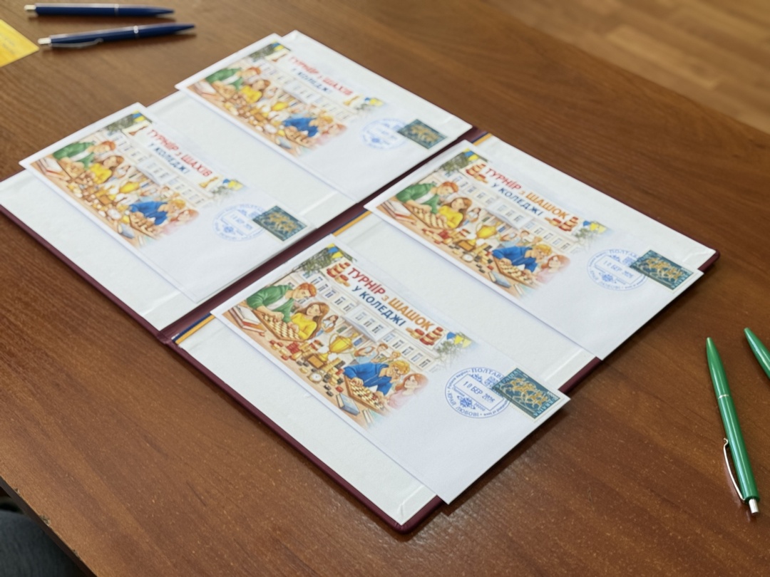 Перед відкриттям турніру відбулося урочисте погашення поштових марок України на двох тематичних конвертах — «Турнір з шахів у коледжі» та «Турнір з шашок у коледжі» — з метою збереження історії спортивного життя навчального закладу засобами філателії: https://surl.li/mzhvsb