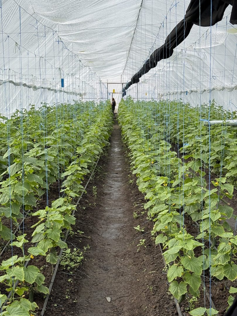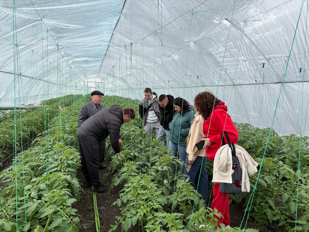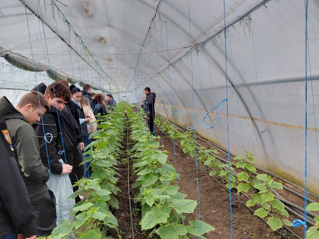 Наріман Махаматович детально ознайомив учасників із технологією закладання теплиць, звернув увагу на якість матеріалів, мікроклімат і системи догляду за рослинами в умовах закритого ґрунту. Окремо зупинився на питаннях забезпечення високої якості продукції, поділився практичними порадами та професійними напрацюваннями. Особливе захоплення у студентів викликала можливість скуштувати свіжі огірки просто з рослини – їхній насичений смак нагадав домашню продукцію.