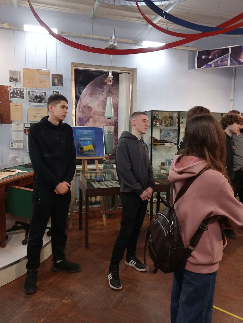 Під час екскурсії студенти ознайомилися з експонатами, що висвітлюють космічні дослідження, розвиток авіаційної техніки та використання космічних технологій у науці. Особливу зацікавленість викликали матеріали, пов’язані з космічним фотографуванням Землі, супутниковими дослідженнями та можливостями застосування даних дистанційного зондування.